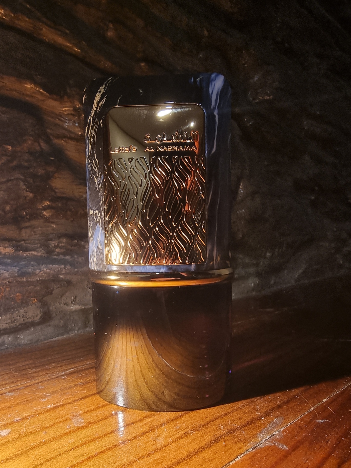 Notas de fundo: âmbar, cedro, patchouli e vetiver.