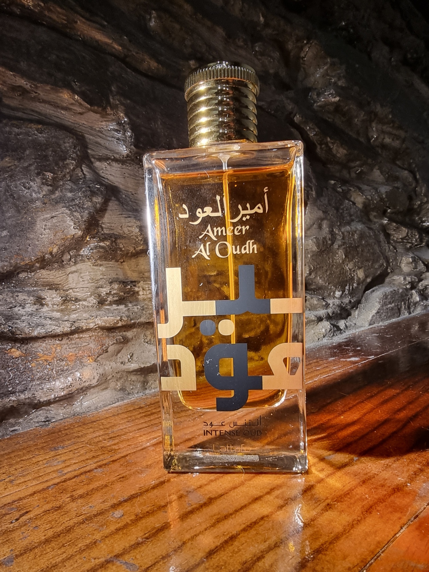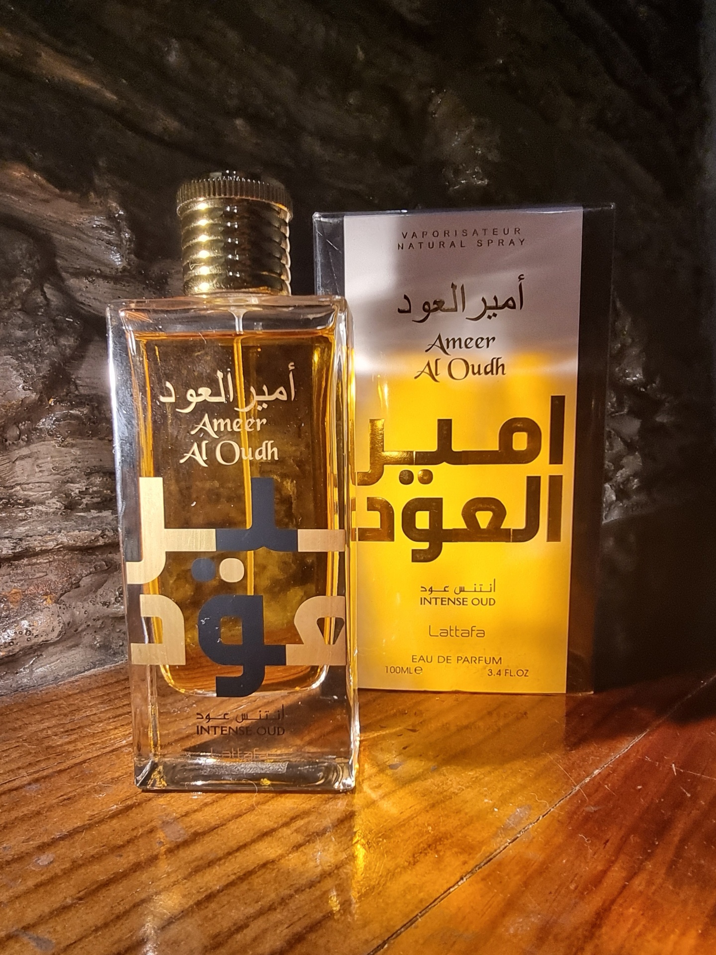 Ameer Al Oudh Intense Oud, da Lattafa Perfumes, é uma fragrância âmbar unissex. Lançada em 2021, possui notas de topo amadeiradas e agarwood (oud); notas de coração de açúcar e baunilha; e notas de fundo de agarwood (oud), sândalo e notas herbais.